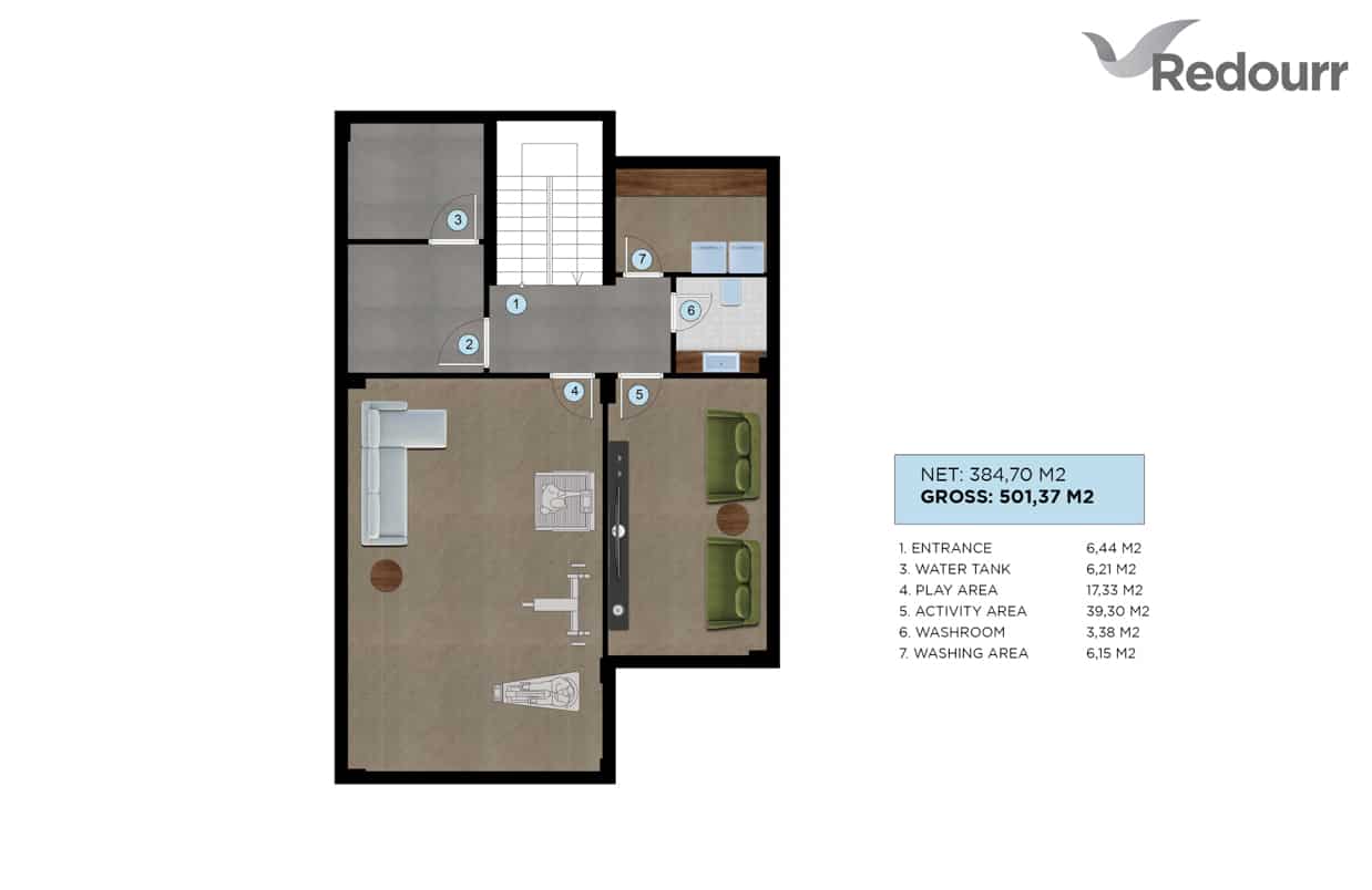 1. Entrance: 6,44 m2 2. Modular Water Storage: 6,21 m2