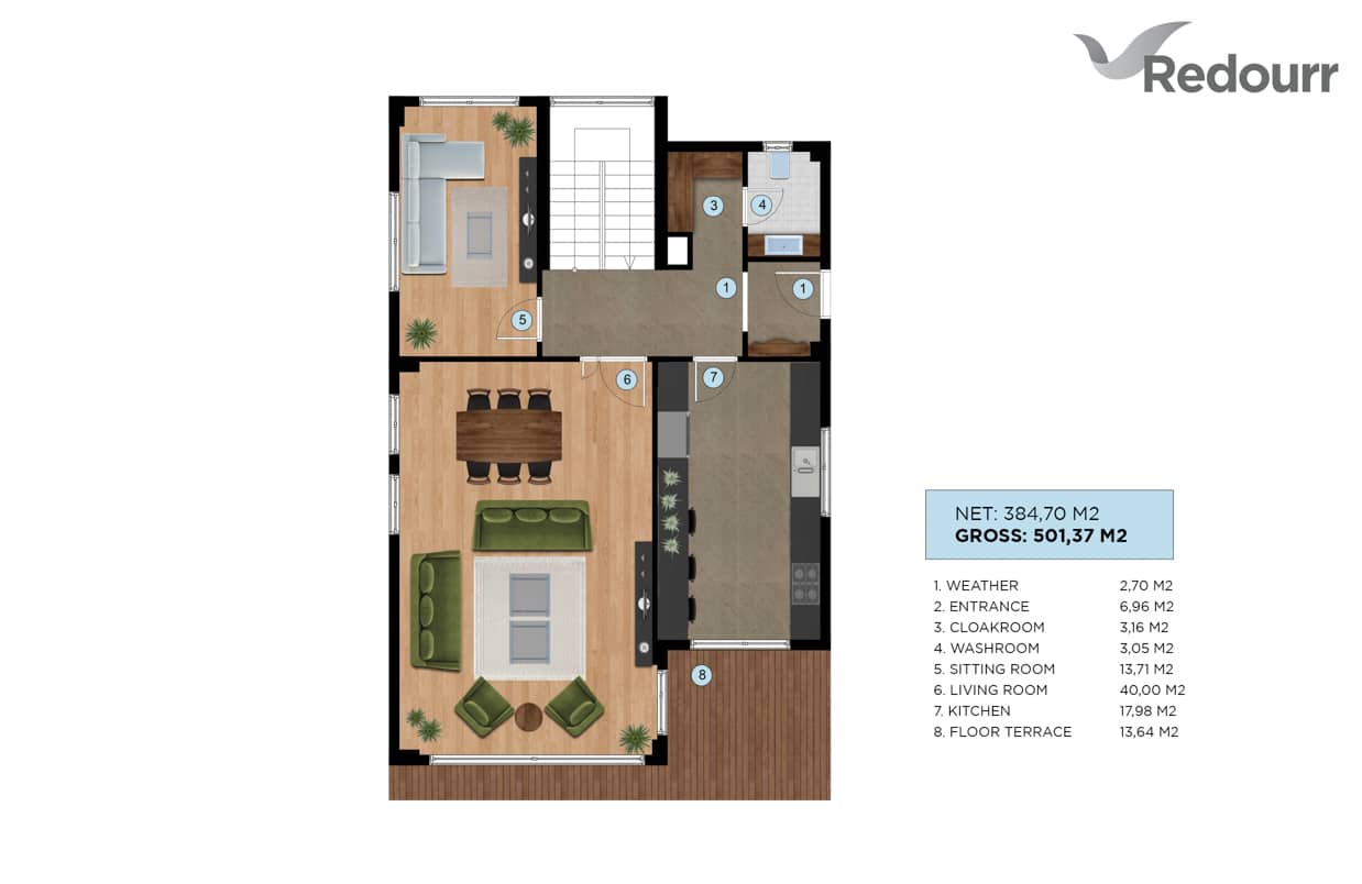 1. Wind Room: 3,62 m2 2. Entrance: 6,87 m2